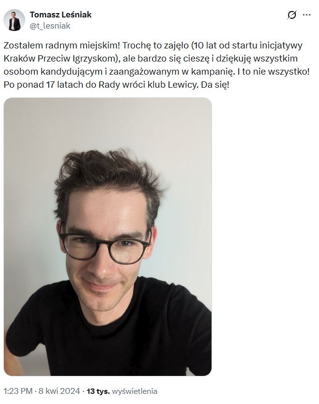 Dla Leśniaka był to bilet do polityki. Z aktywisty miejskiego zrobił się radny, działacz Lewicy, członek komisji, głos w radzie miasta.