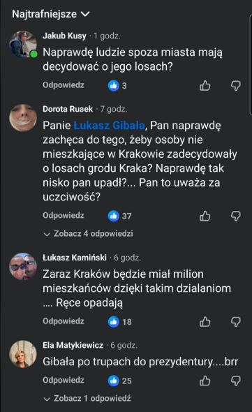 - brzmi jeden z komentarzy pod postem, w którym Gibała namawia, by dopisywać się do listy wyborów w Krakowie.