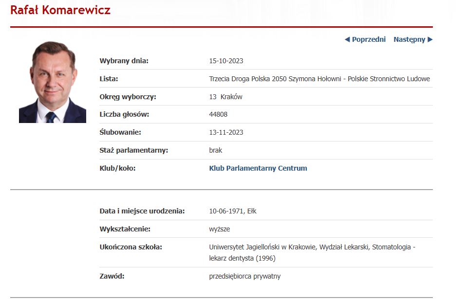 Potem przyszedł czas na projekt Polska 2050 i polityczny parasol Szymona Hołowni. Komarewicz, znowu na jego plecach, wszedł do Sejmu oraz startował na prezydenta Krakowa. Billboardy z tej kampanii prezydenckiej mówiły same za siebie: Hołownia większy, wyraźniejszy, symbol politycznej trampoliny. Komarewicz ustawiony bokiem, a nawet lekko tyłem. Ot, zwykły pionek obok króla na politycznej szachownicy.
