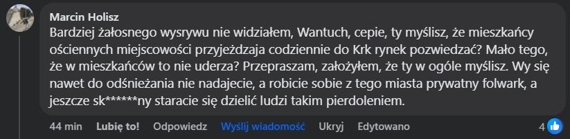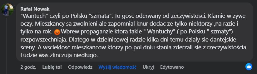 Przejrzeliśmy kilka profili tych, którzy wylewają swoją frustrację w komentarzach. Normalne zdjęcia rodzinne, uśmiechnięte selfie, weekendy z dziećmi… a w odpowiedzi na argument – agresja i wulgaryzmy. By nie być gołosłownymi, prezentujemy kilka przykładów komentarzy wraz ze zdjęciami profilowymi ich autorów: