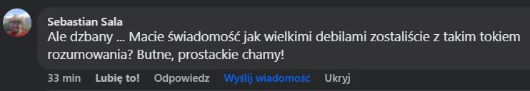 Takiego nagromadzenia wulgaryzmów w komentarzach dotychczas nie widzieliśmy. Kur*y i ch*je latają na prawo i lewo. A argumentami stają się słowa typu: wypier*alaj. I piszą to ludzie, którzy na co dzień pokazują swoje życie z żonami, partnerkami, dziećmi.