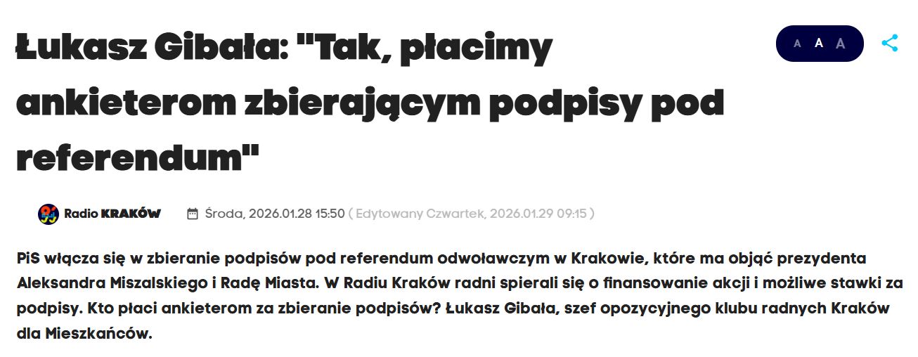Cały tekst możecie przeczytać tutaj: Kto finansuje referendum w Krakowie? W tle środowisko Gibały