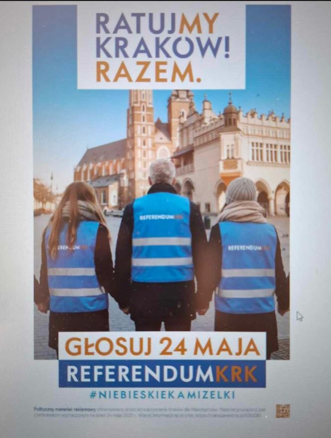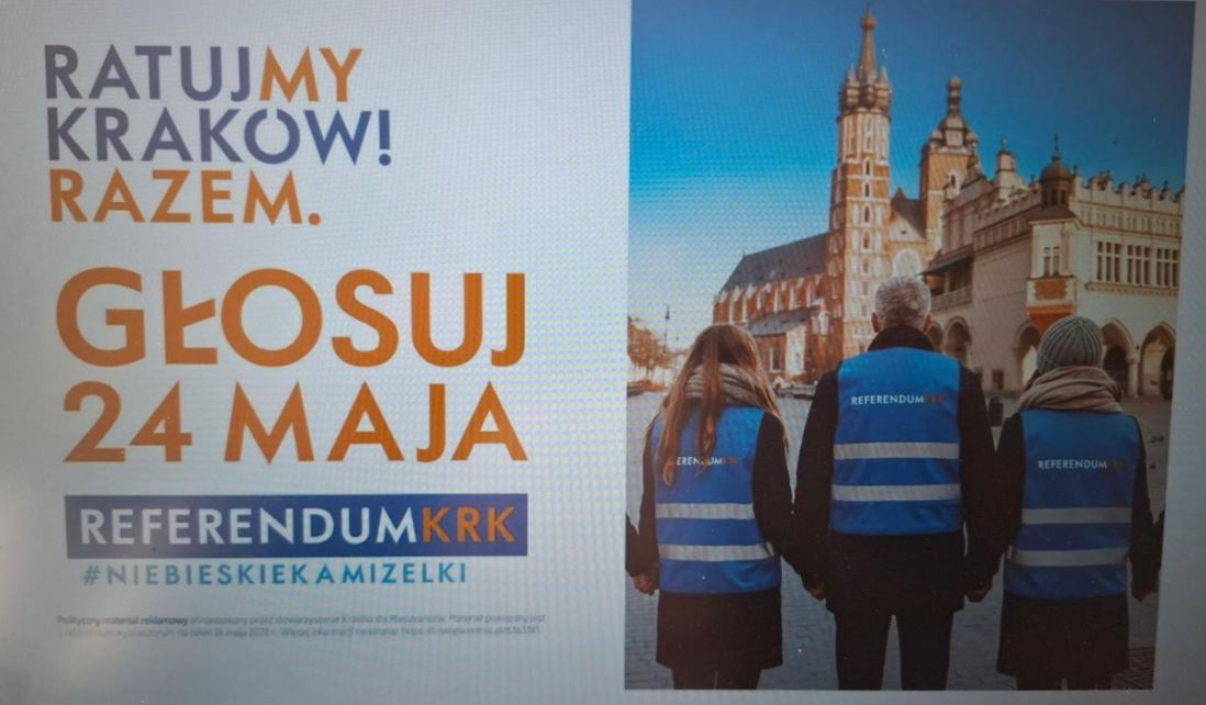 Od początku maja w przestrzeni miejskiej Krakowa, na przystankach, słupach i innych nośnikach reklamy, mają zacząć masowo pojawiać się materiały zachęcające do udziału w referendum. Dotarliśmy do informacji, kto płaci za tę kampanię.