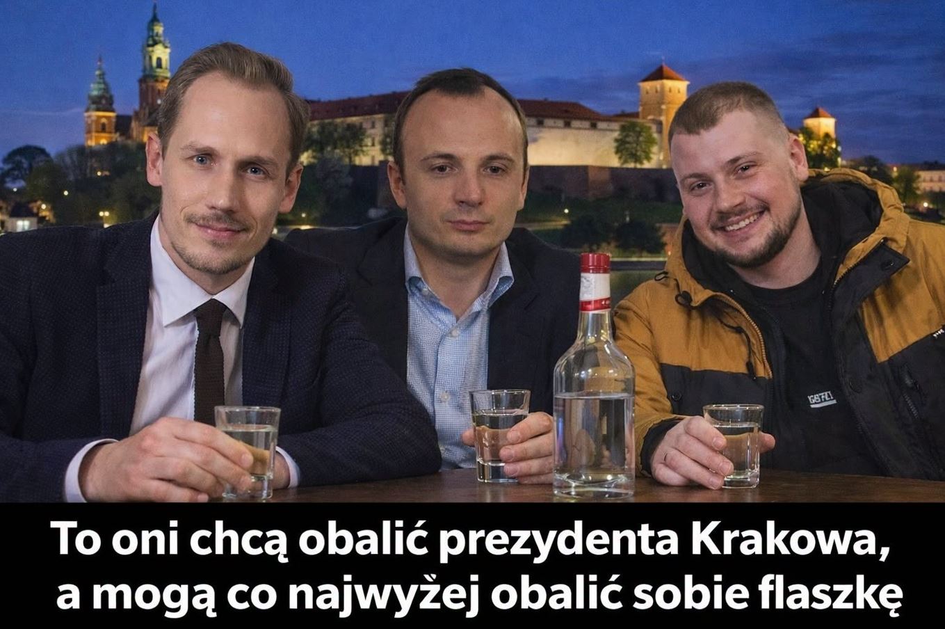 Tempo wyraźnie siada, bo krakowianie zaczynają się łapać, z kim naprawdę mają do czynienia. Jedną z najbardziej widocznych twarzy całego przedsięwzięcia jest bowiem Mateusz Jaśko – wielokrotnie skazany lokalny gangus zamieszany w aferę kryptowalut, ten sam, który prawomocnie dostał wyrok za grożenie dziennikarzowi TVN i oferowanie mu miliona złotych łapówki.