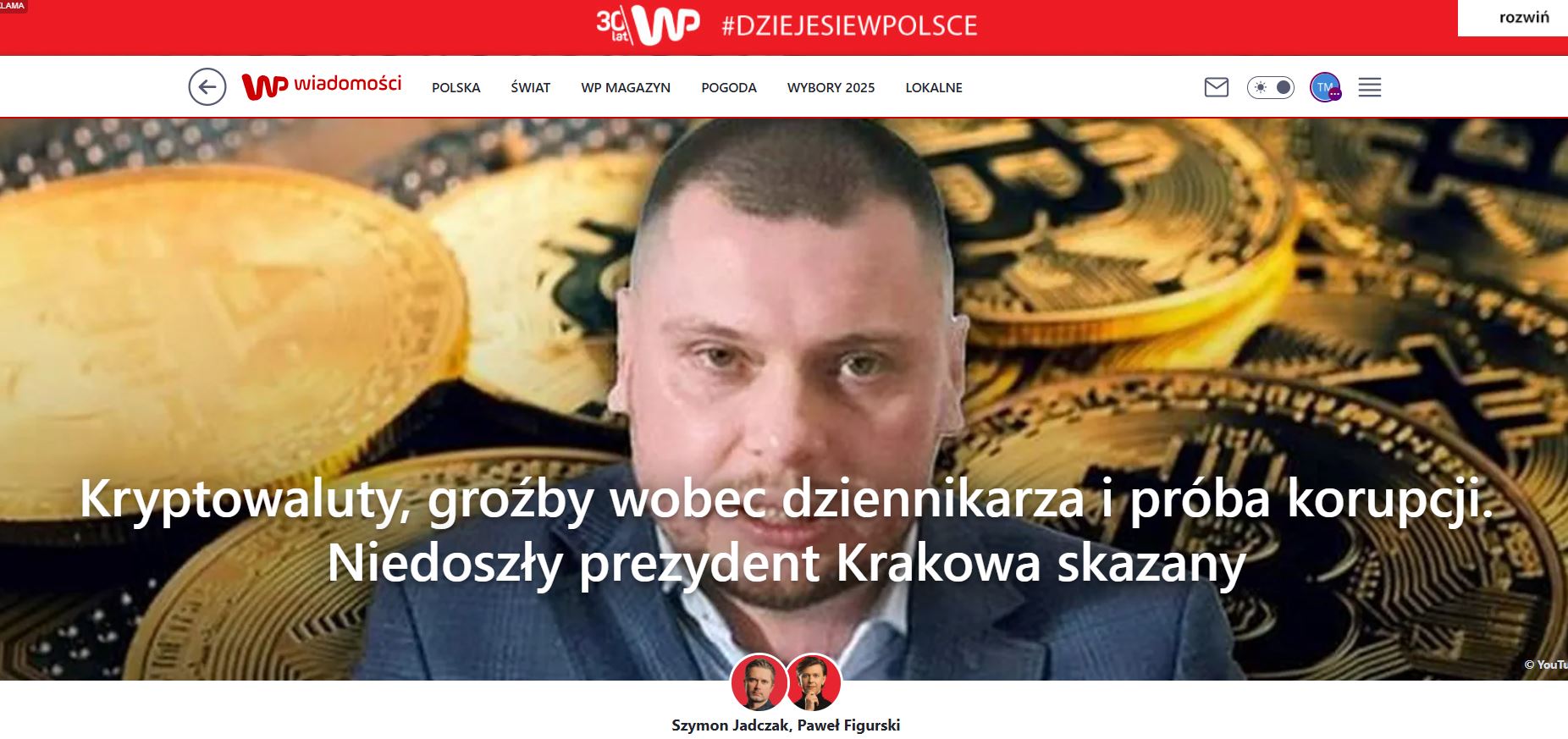 Najpierw Wirtualna Polska – cała Polska czyta: Kryptowaluty, groźby wobec dziennikarza i próba korupcji. Niedoszły prezydent Krakowa skazany