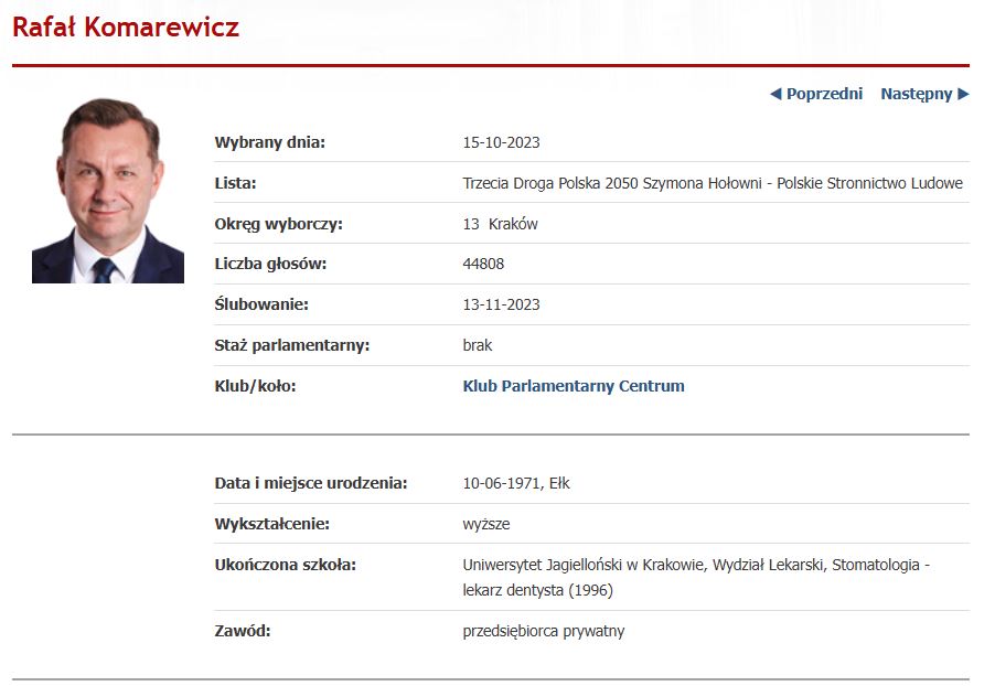 Komarewicz trafił do Sejmu z list Trzeciej Drogi (pamiętacie jeszcze słynny cytat Tuska: "albo Trzecia Droga, albo trzecia kadencja PiS-u?"). Teraz 54-letni dentysta zmaga się z klasycznym politycznym dylematem: co dalej?