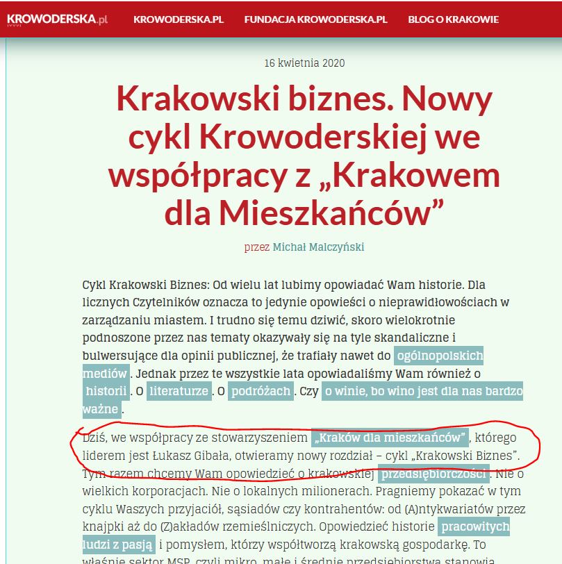 I nagle kwiecień 2020 roku. Portal już oficjalnie chwali się współpracą z… Łukaszem Gibałą. Tym samym, który w tym czasie intensywnie budował swoje polityczne zaplecze i szukał przychylności mediów, które mogłyby pomóc mu w drodze do fotela prezydenta Krakowa.